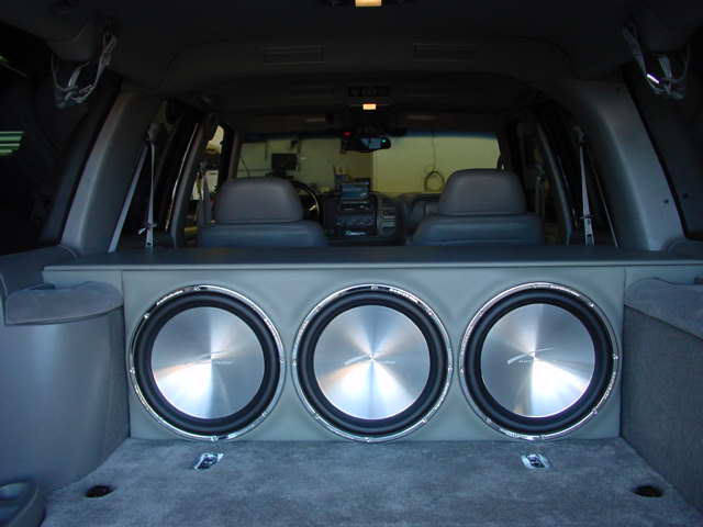 Alpine CVA-1005, Alpine in dash DVD player, Alpine dolby digital processor, Alpine 6.5 inch widescreen monitor in back, Alpine ERA-320 EQ, Alpine 12 disc changer, Sony Playstation 2, 2 Rockford Fosgate Fanatic Q 5.25 Components, 1 Rockford Fosgate Fantic Q 6.5 component, 4 Rockford Fosgate Coax's for center and rear surrounds, Rockford Fosgate bd1500.1, Power 800.4, Power 400.1 and Power 150.1, 3 Audiobahn aluminum 15 in subs