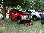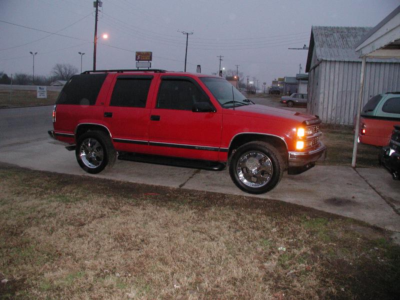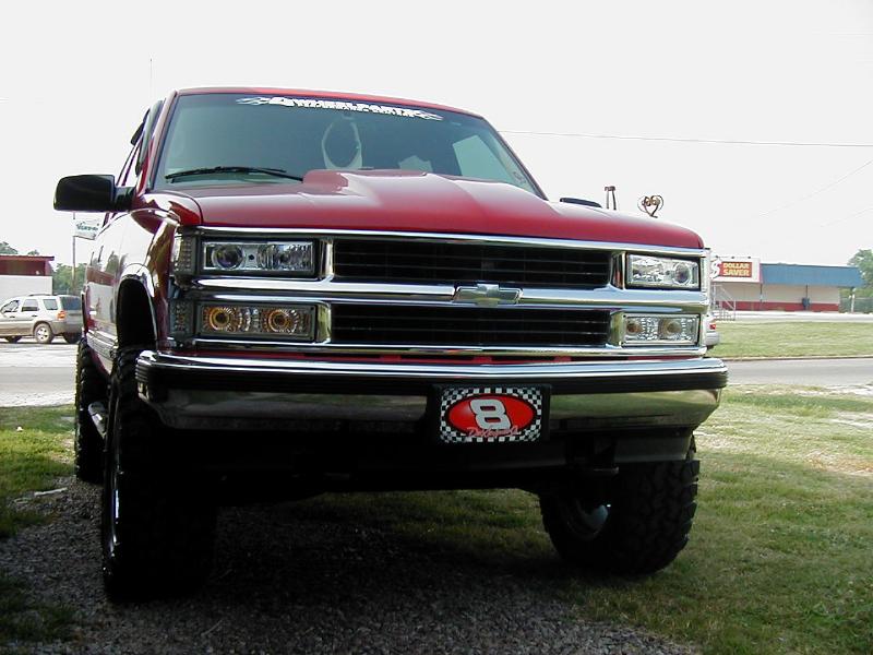Cowl hood, custom tribal grill, euro's all the way around, chrome fender trim, chrome nerf bars, billet gas door, and a Wind Jammer fin.
