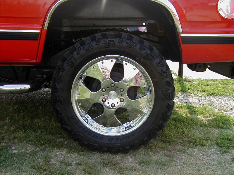 20x10 Sendel S19 with 33x13.5x20" Super Swamper Irok Radial tires.