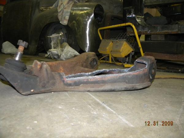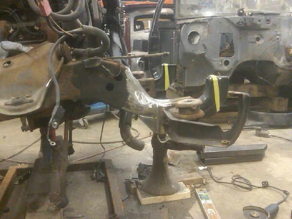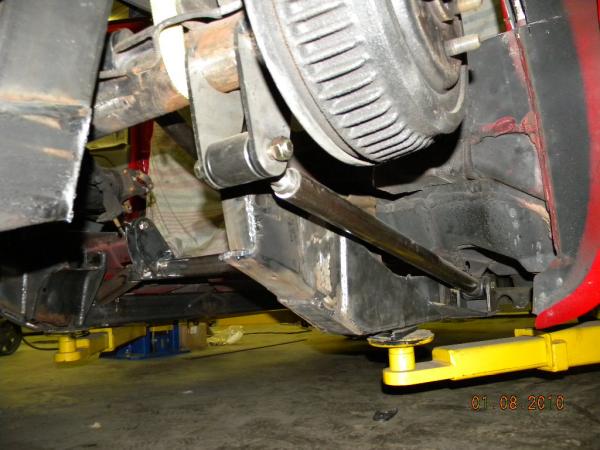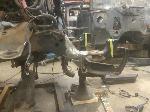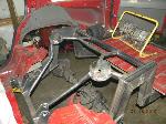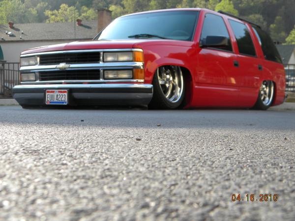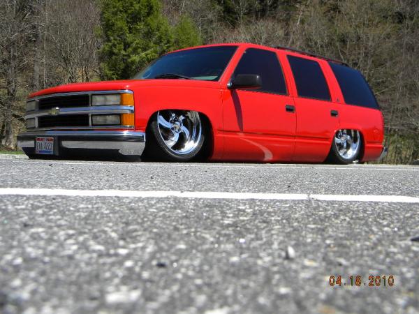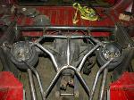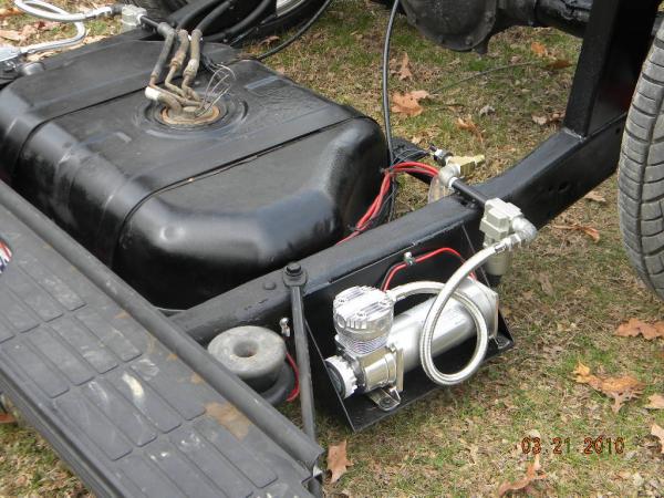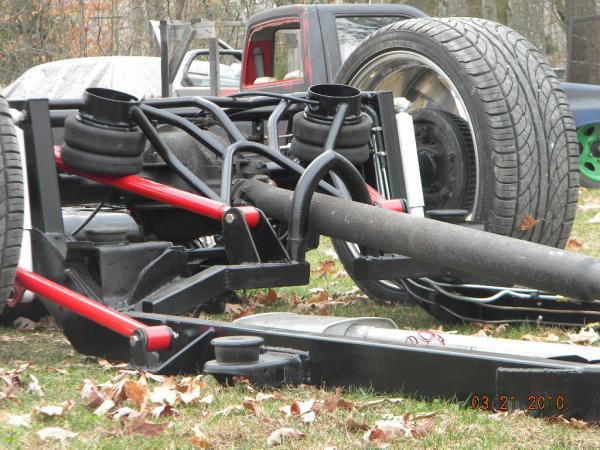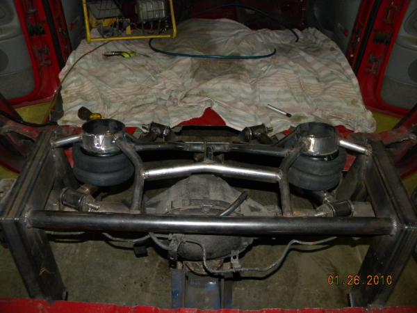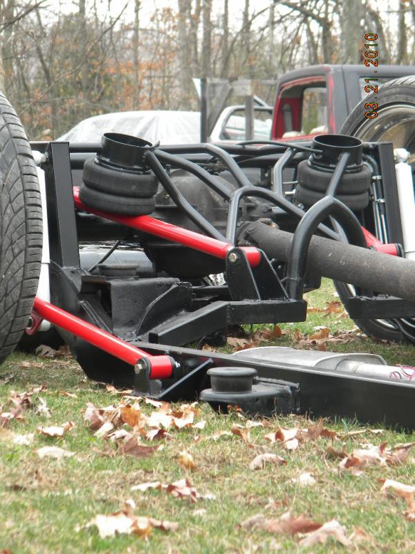 Front: Pie cut upper control arms, dehumped lower arms, drop spindles, frame notched for tie rods, tubbed firewall, Airlift 2600s
