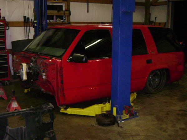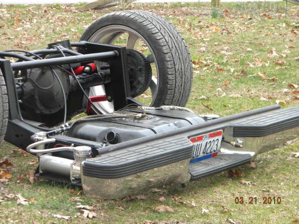 move fuel cell toward rear axle 2", roll pan molded, shave rear handle and roof rack holes, relocate rear fuel lines and move lower link bars inboard of frame, 96 Impala rear axle narrowed 6", rebarrel rear wheels to 6" lip, shave gas door and relocate behind driver taillight, single color paint (color undecided), lq9 with z06 heads cam and intake with 4l80e