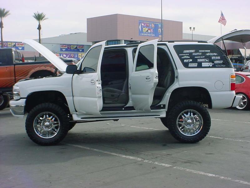fully color matched bumper caps and valance, mirror caps, handles, side steps, debadged, billet grab handles, precision phat chrome billet grille, front clear lens, color matched tails.