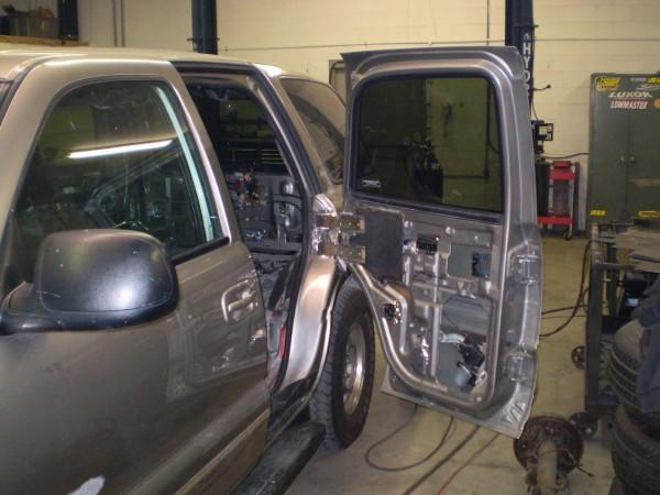 Escalade front end, shaved door handles, door handles from a 94 caddy deville grafted in, suicide back doors.