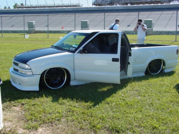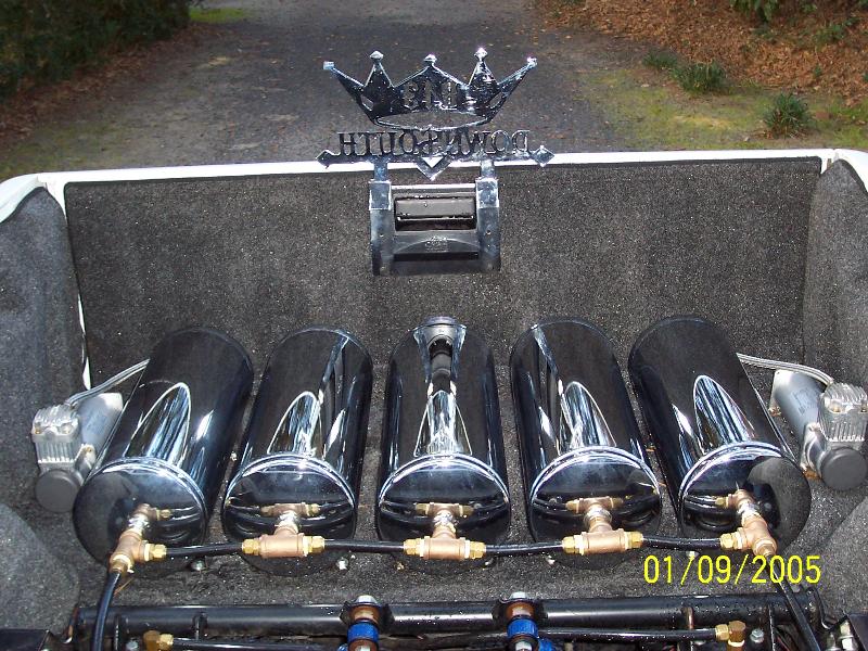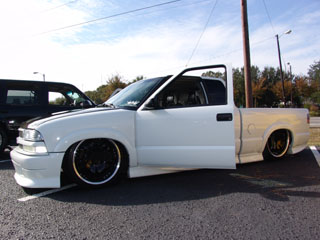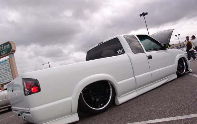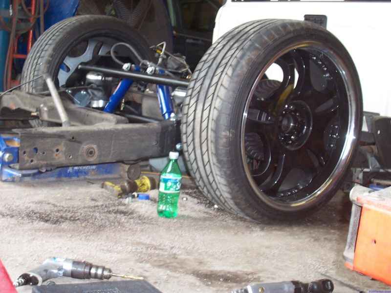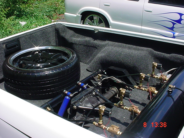 roadgrater with air ride techs coolride front setup- 2 vivair 450s all 1/2 valves and lines 10 switch box. 5 chrome 3 gallon tanks in bed. relocated everything underhood and removed abs,ac,heat and installed hydroboost. tubbed firewall and lays frame on 22"s pushes kit off when layed out all the way