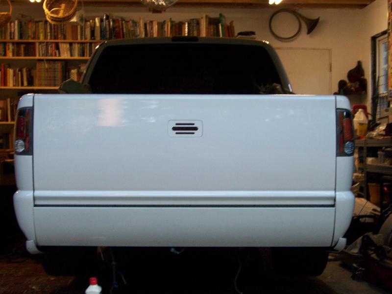 BILLET GRILLE,ANTENNA,BOWTIE THIRD BRAKE LIGHT IN PLACE OF TAILGATE HANDLE WITH SIR MICHAELS RELOCATOR CARBON FIBER TAILS, CARBON FIBER HOOD , CLEAR CORNERS. gm rollpan ss mirrors wings west 3 piece wing
