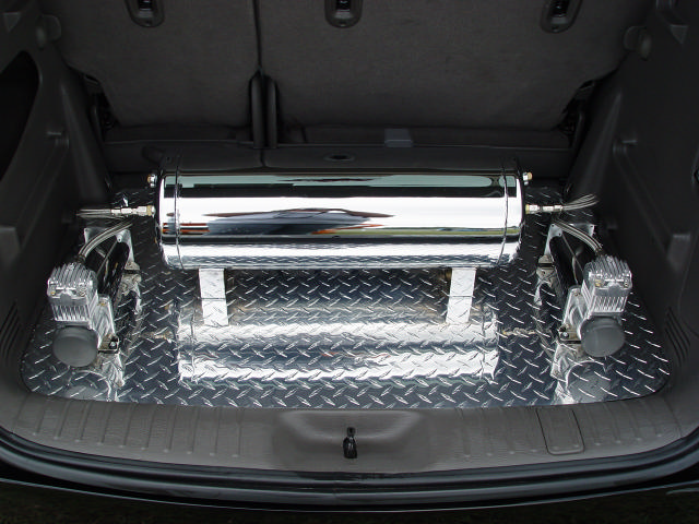 Its Bagged... Air Ride Technologies struts in the front, easy street bags in the rear. 1/2" lines, 5 gallon tank, 2- viair 450C compressors.