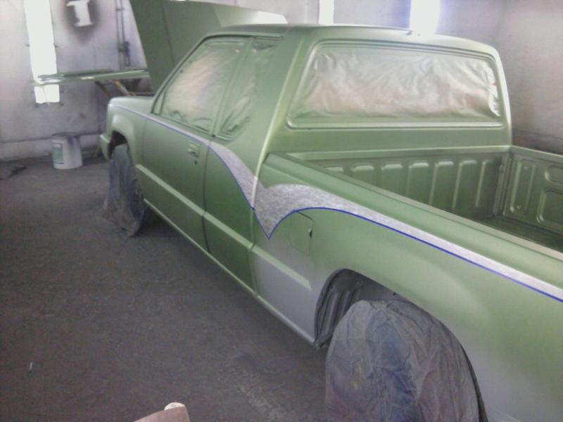 bagged lays frame 4link rear custom lower control arms in front front bagged to fit 22s rear not can fit 19s with no holes in the bed possible bodydrop in the future...