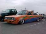 FULL CUSTOM PAINT GOST FLAMES IN GRAPHICS SHAVED DOORS SHAVED TAILGATE, AND A BILLIT GRILL.