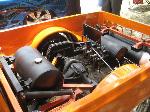 one-off gas tank w/ sight glass,92 'yota mirrors. '95 mitsu front bumper, and finally a new smooth roll pan.custom painted bright orange inside and out by J&M Paintwerks