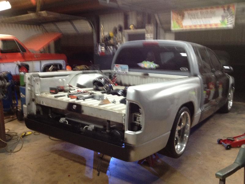 new bed , relocate battery, front shocks, front tubs, fix camber in front, new front fenders and valance, new fuel cell, body work and paint.