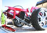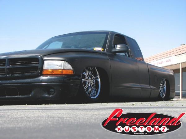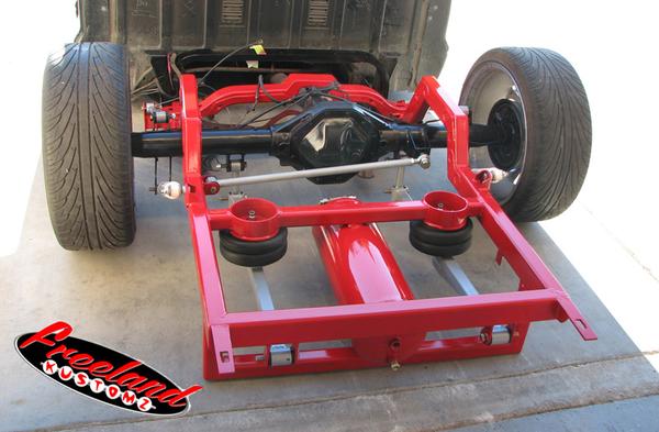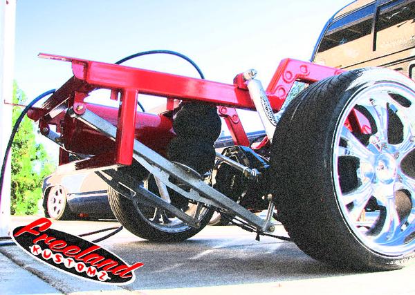 slam re7s up front and re8s in the rear with a parallel 4 link pan hard and cantilever setup in the rear. back half. traditional body drop on deep dish 20s. front suspension shortened, rear end shortened