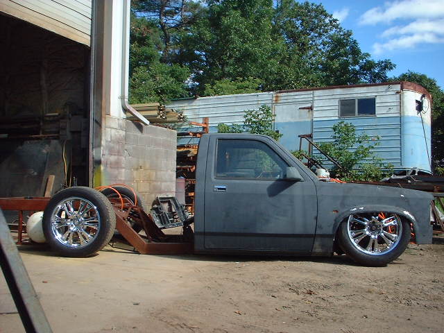 Tailights shaved and Caddies installed by Vic,Flat Black 2-stage Epoxy Primer painted by Vic, Dakota SE grill and Mirrors. Hopefully I can finish my bodydrop this year and my tilt bed.