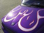 Dark purple paint job with bluish ghost flames, brighten up engine compartment, eventually install airbags.