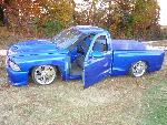 shaved handles, taillights, antennae, cali combo, led tails, one suicide door (now done correctly!), has viper blue paint with ghost flames