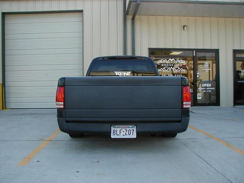shaved doors, tailgate and molded rollpan, dual halo headlights, sport mirrors, all primered black for now; soon to be shaved: gas door, antenna, emblems and i'm debating on the taillights