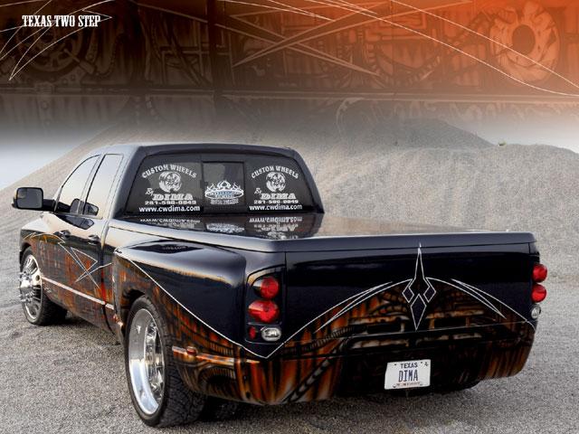 An X Klusive grille,K and S Kustom sprayed and coated the big-wheel hauler with a House of Kolor Bright Silver, Rootbeer, Tangerine, and black paint scheme and airbrushing.