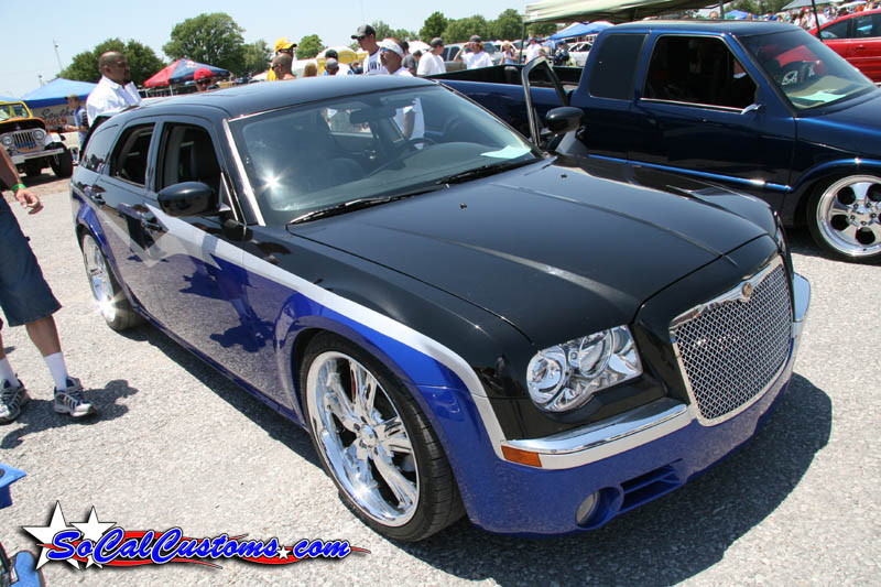 2TONE PAINT CANDY REDW/BASSBAOTFLAKES AND FLATBLACK,300C FRONT CLIP,SHAVED REAR WIPER,SHAVED DOOR HANDLES POWDER COATED GRILLE,SRT8 FRONT BUMPER AND 2"COWL HOOD, BLACKED OUT HEADLAMPS