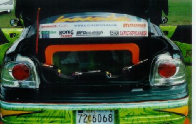 Painted on Graphics, Xenon body kit, Projector Headlights, aftermarket tail lights, Aluminum wing chrome dipped, shaved key hole, yellow underbody neon’s, sunroof, Dual stainless steel exhaust