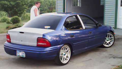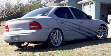 Shaved third brake light, and keyhole on truck. Grey primer with blue graphix.