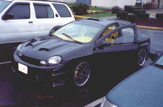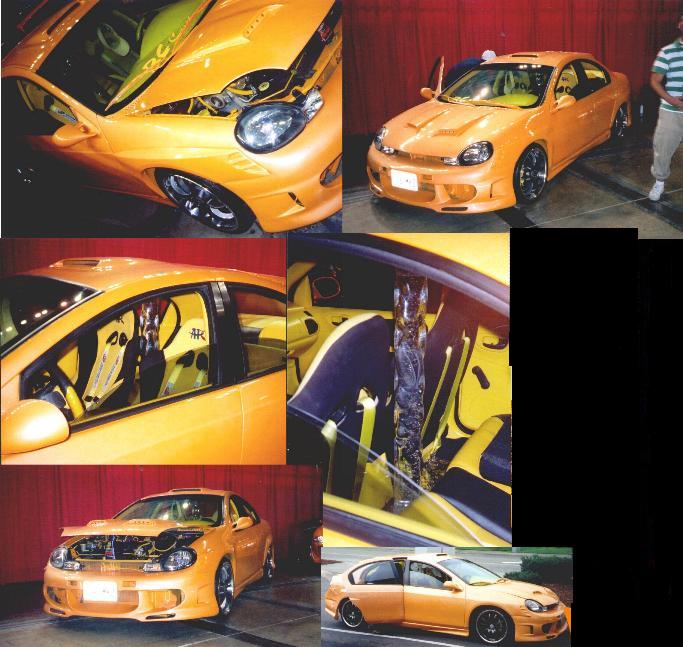 Jet Black (no more Orange Crush), Andy's autosport full combat kit molded, Wings west 7 piece extreme fender flare kit, custom ram air hood and roof scoop both molded, instagator II rear window spoiler, M3 mirrors, Door handles emblems, door moldings and antiena shaved, flip trunk conversion, apc black crome tails, tyc racoon eye diamond clear headlights, hyper turn signal conversion, euroeffects purple led underglow
