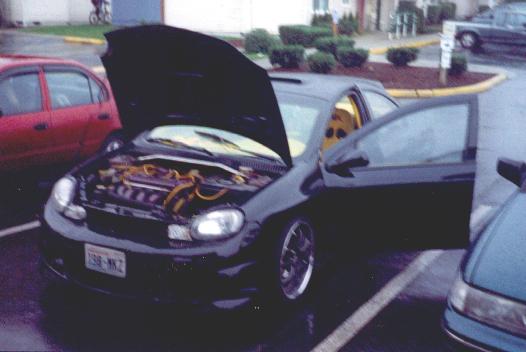 2.0 rebuilt, ported polished head, anodized purple valve cover, intake manifold, feul rail cover, and strut bar braces, billet feul rail, fully funcional ram air intake, yellow accel plug wires, yellow engine dress up kit