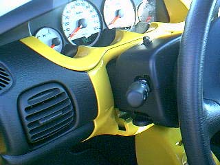 custom yellow dash, dial clusters, and center console, srt sts, srt shift boot, ichibahn knob, ractive pedals, srt interior door handles