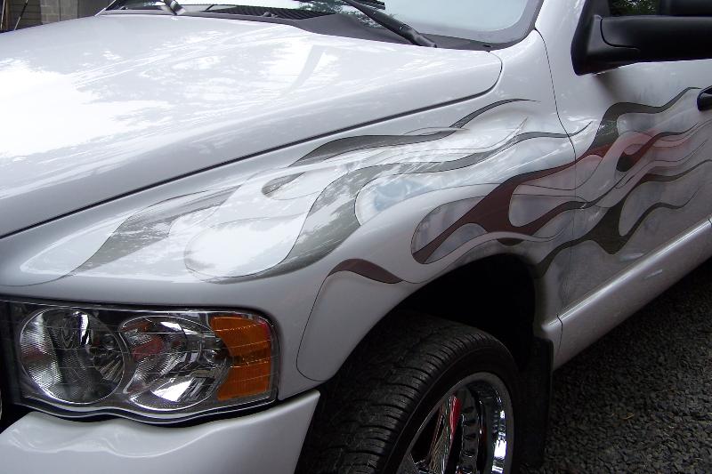 2 layer flames with airbrushed skulls, rollpan, billet grilles, 8000k HIDs