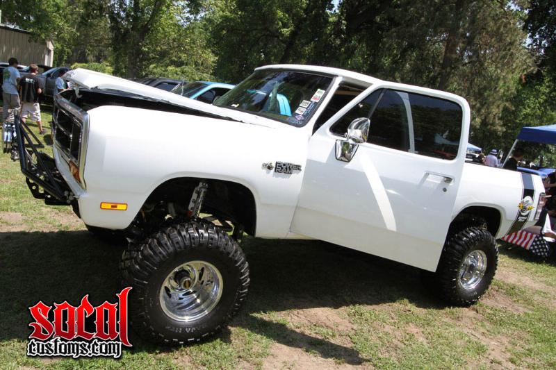 Paint and body was done by Brandon Sisco of Sisco's Customs in Visalia, California, powdercoated Fabtech light bar, three KC Daylighters, everything underneath powder coated by Visalia Powder coating of Visalia California.Cen Cal Distributing onboard air system w/ 5-gallon nine-port air tank, 280C Viair compressor, United Pacific train horn with manual release valve mounted inside of cab