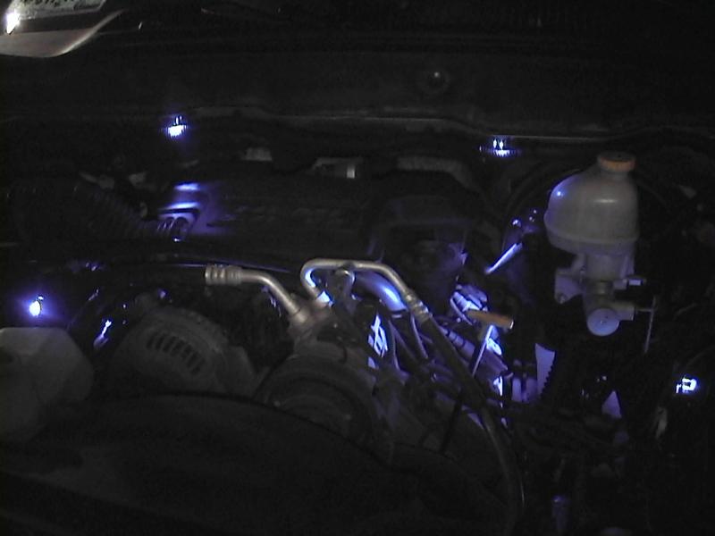 shaved emblems, side exit exhaust, blue neons, blue strobes in grill, blue leds in engine compartment