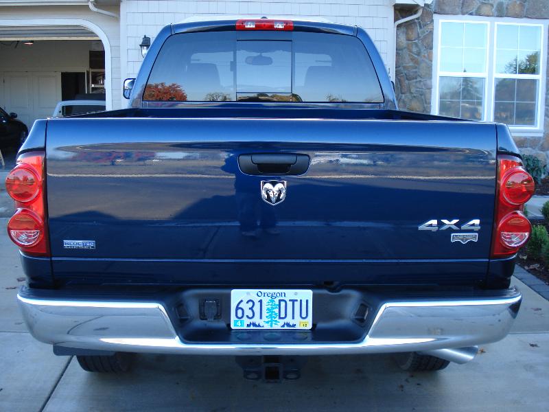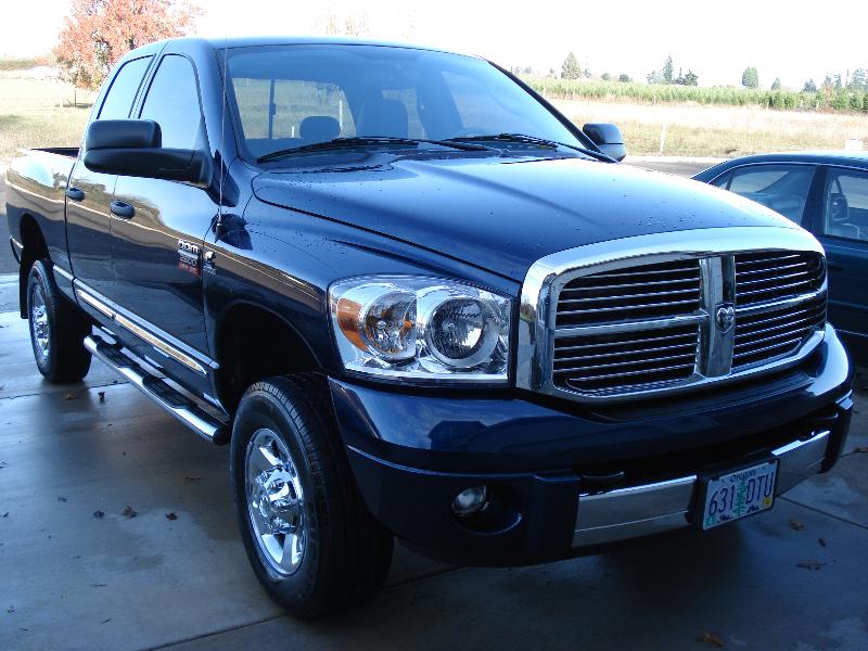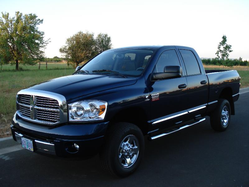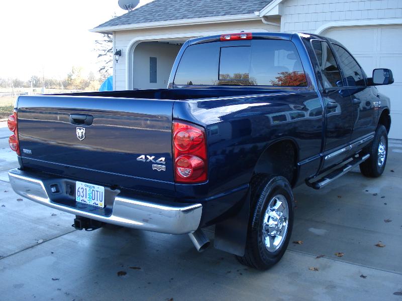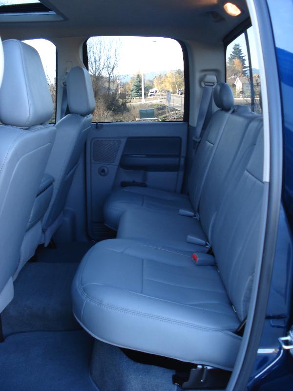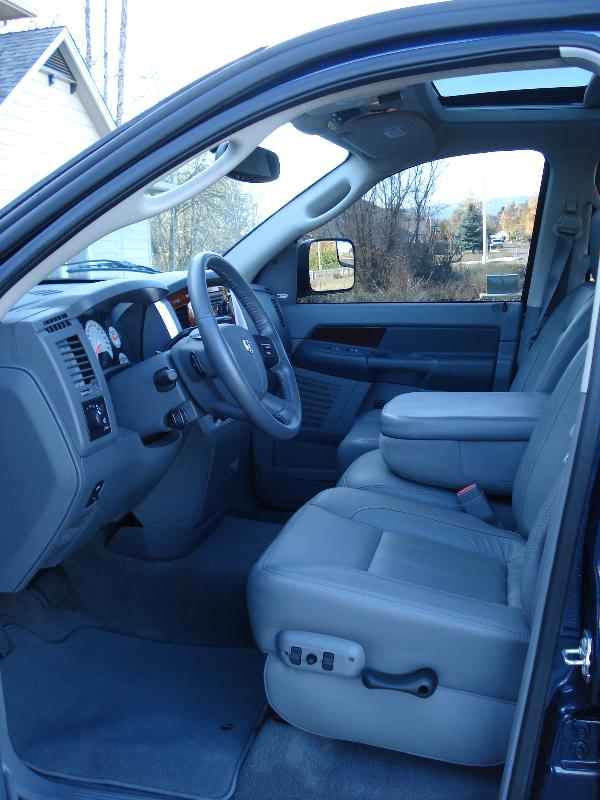 Laramie package / Patriot Blue Pearl paint / Chrome grille with chrome inserts / Power sunroof, Power rear sliding window / Chrome bodyside trim / 20% tinted windows