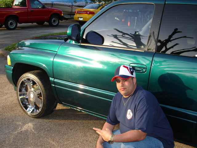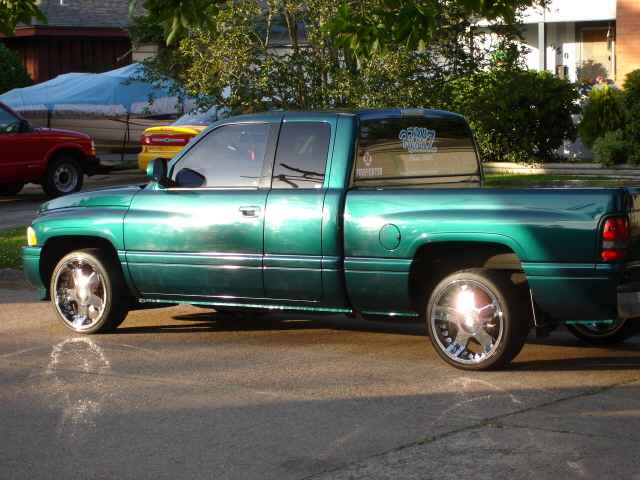 Custom green paint. Bed cover. painted bumpers, shaved emblems