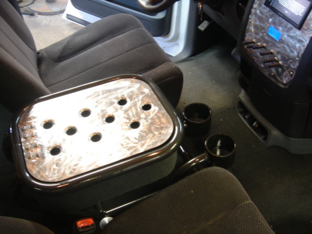 Tube console, stainless dash, stainless inserts, relocated AC controls, custom leather seats...