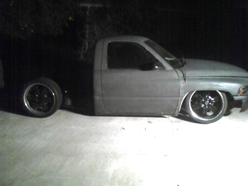 RE-7 on front and RE-8 on rear. bag on bars 4-link. 2 viair 480s, 8 gallon tank all hidden under bed between frame rails