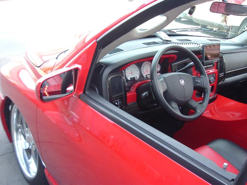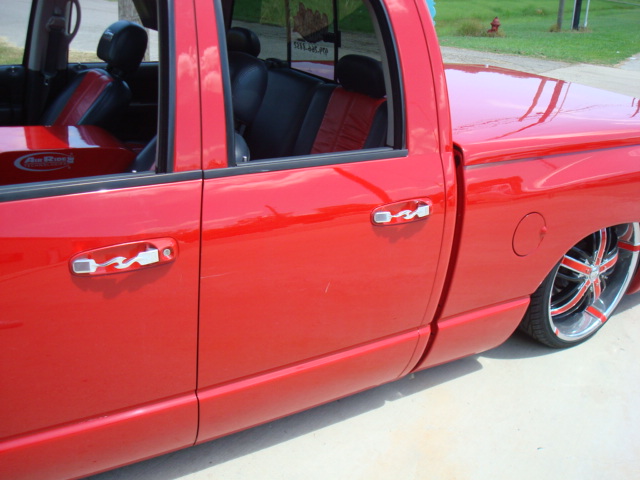 srt 10 hood, billet grille, billet bumper grille, billet antenna, billet custom tribal flame door handles, street scene dual turn signal mirrors, roll pan, shaved tailgate handle, bed cover, etc.