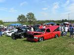 Flame red paint, patriot bed cover, euros, billet grill, fiberglass rollpan