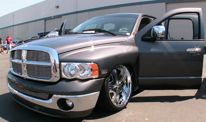 Bagged on Slam 72s. Two 7 gallon tanks. Two Air Zenith compressors and Nitrogen. JDM control arms and 2" drop spindles up front with batteries relocated behind bumper. 8" notch in back with 4 link.