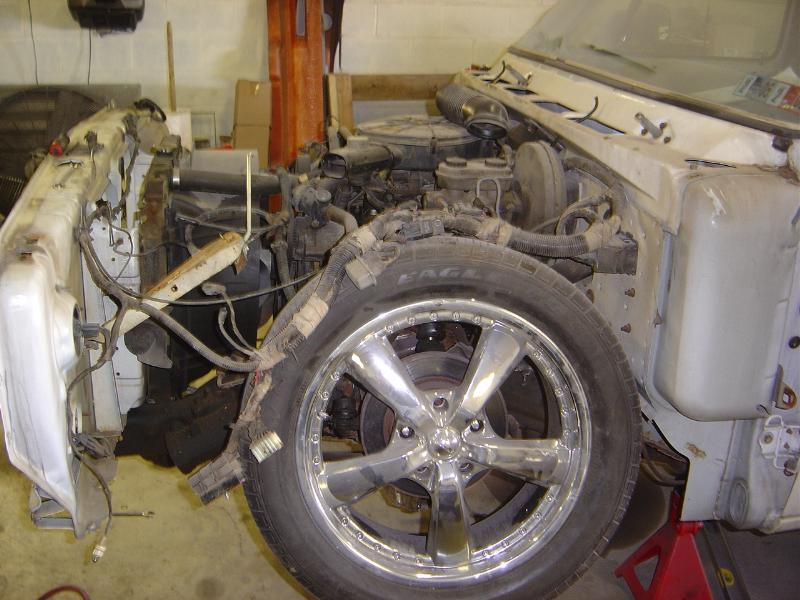 custom front control arms (byc), byc watts link out back, 2 link, parker 1/2 golds, york compressor, viar 450 back-up, 2600 stones all the way around, 2" frame z, stock floor'd to the bumpers