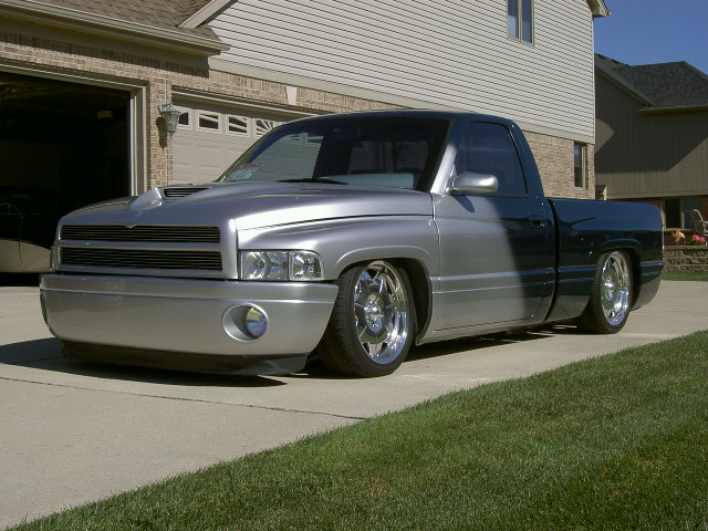 Silver Pearl Metallic/ Emerald Green Metallic Paint, Painted door handles, Shaved Tailgate, Ram Sport Headlights, Crystal Clear corners,