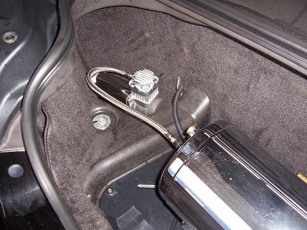 Bagged using all Air Ride Tech parts including Custom made Shockwaves, 3/8 Big Red vales, 2 Viair 450's chrome, and a 5 gal stainless tank.... And remote auto ride from ART