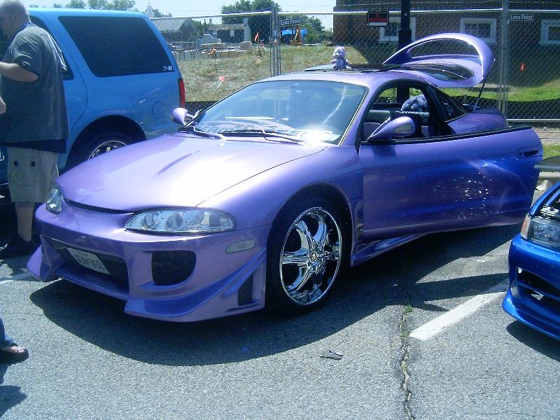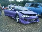 starlight purple paint, full blitz body kit, eclipse rear end conversion w/euros, m3 mirrors, halo projector headlights, shaved antenna, hood squirters, webasto sunroof