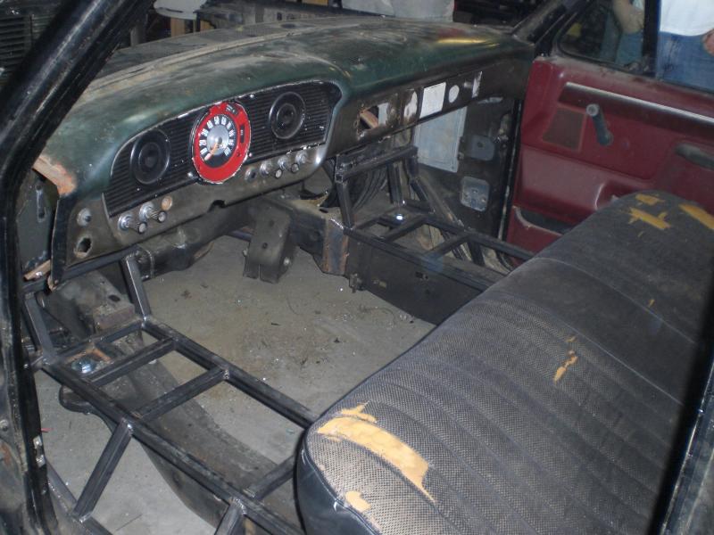 GOING OLD SKOOL WITH A 65 F100 DASH, CUT DOWN RECOVERED BENCH AND A RAT-ROD STYLE SHIFTER