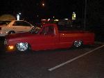 shaved gas filler door and antenna and hood squiters, wheel tubs front and rear, new flat red paint job and matching red bed liner