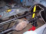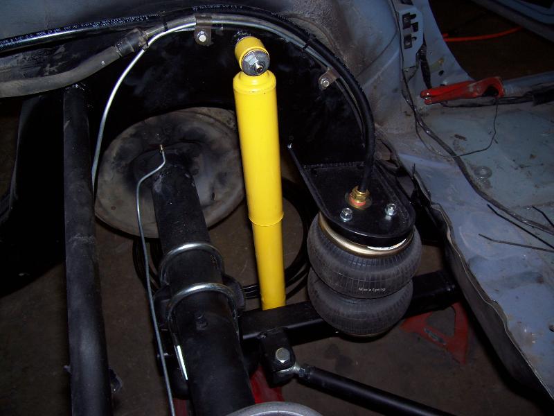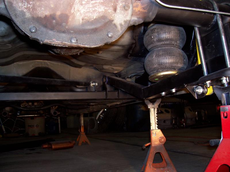 custom built control arms, 3 link suspension to keep the back seat and custom round notch. new tubs in the back also.