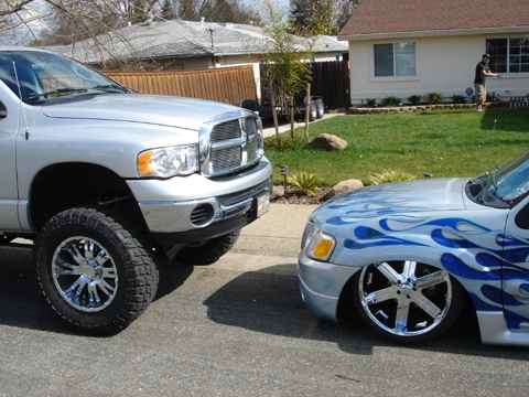 Them're big and shiny- 22 inches, with skinny little tires. I'm thinking of lifting the truck and putting some 26s on here instead!
