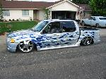 It's got rims, paint, a body drop, and lots of stars. My teacher in 2nd grade put stars on my homework, so I put them in my paint to let everyone know I'm special! I put a sliding ragtop in, too- see my suspension mods for an explanation...