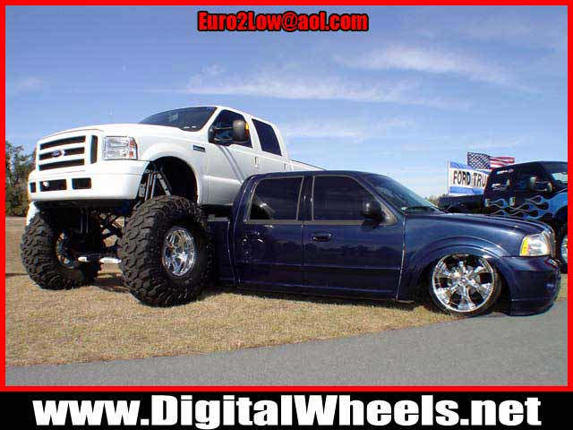 everything painted to match, roll pan, shaved tailgate, white bumper and grill, full billet, 2005 front clip