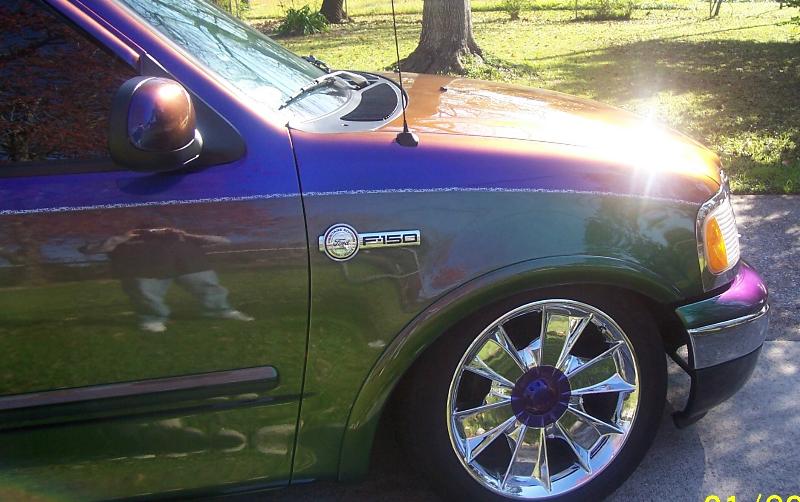 top color sikkens blue to red cameleon... bottom color sikkens green to gray cameleon and i also have train horns in the bed and 7 color l.e.d lights underneath