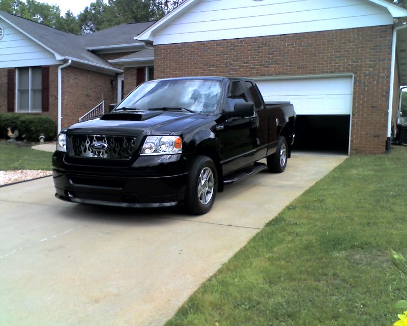 Roush chin spoiler, Roush hood scoop, Roush Tailgate spoiler, Black Nerf Bars, Husky molded mud flaps, 9" stubby antenna with flames etched in, Stainless flamed grill and stainless flames on tailgate. Stainless fuel door. Under truck neons (Blue)Black Altezza Tail lights. Full Tinted windows. Blue H.I.D head lamps, Bosch pivotless wiper blades