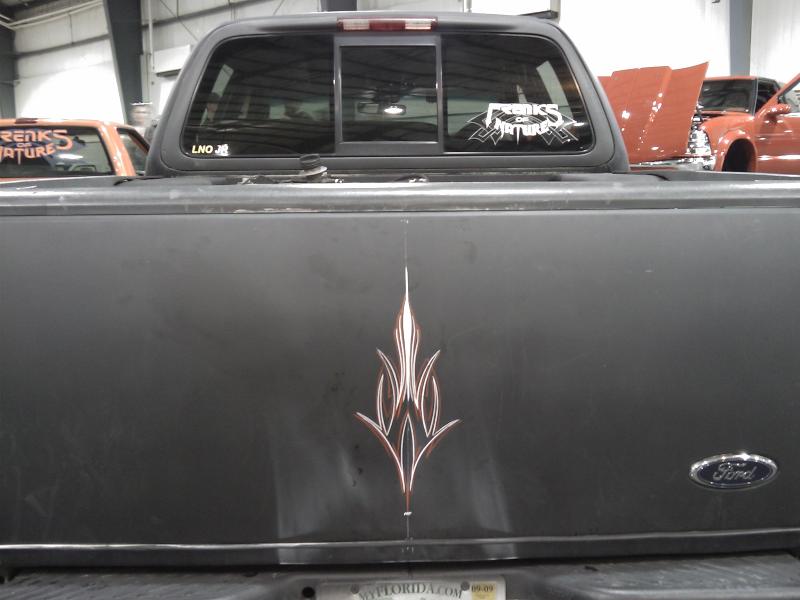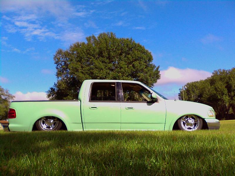 body dropped to the rocker, lightning headlamps and corner markers, shaved tailgate handle and gas filler