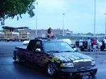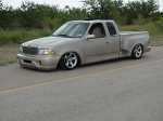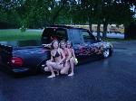 Flat Black singal stage paint with House of Color Metal Flake Flames by pat Maxwell of Maxwell Designs Navigator front clip, Trenz billet grille, Sir Michaels roll pan, Snug top bed cover, 40X40 Rag Top, Street Scene mirrors